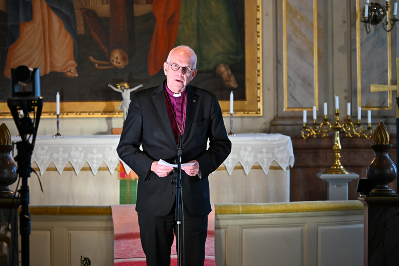 Ärkebiskop Martin Modéus under Askel Sovinthoon i kyrkan i Karungi 2025.
